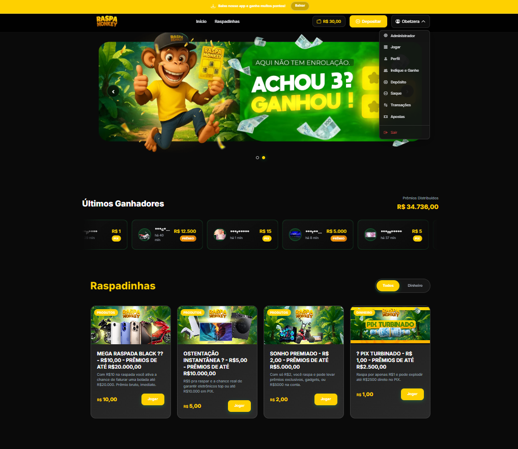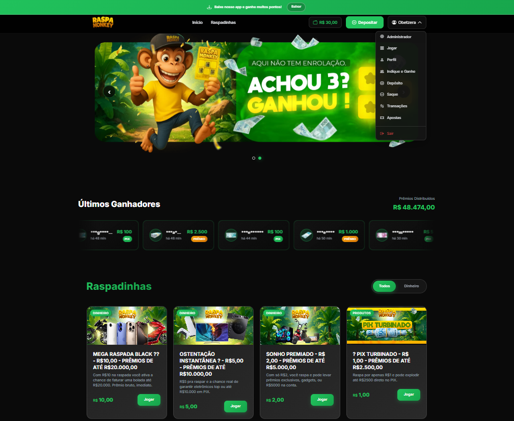 Tenha acesso rápido e direto!Venda e opere raspadinhas digitais com pagamentos via PIX, saques automatizados, painel administrativo completo e programa de afiliados (CPA e RevShare). Ideal para quem busca um produto digital pronto para monetização, com experiência moderna e integração a gateways nacionais.