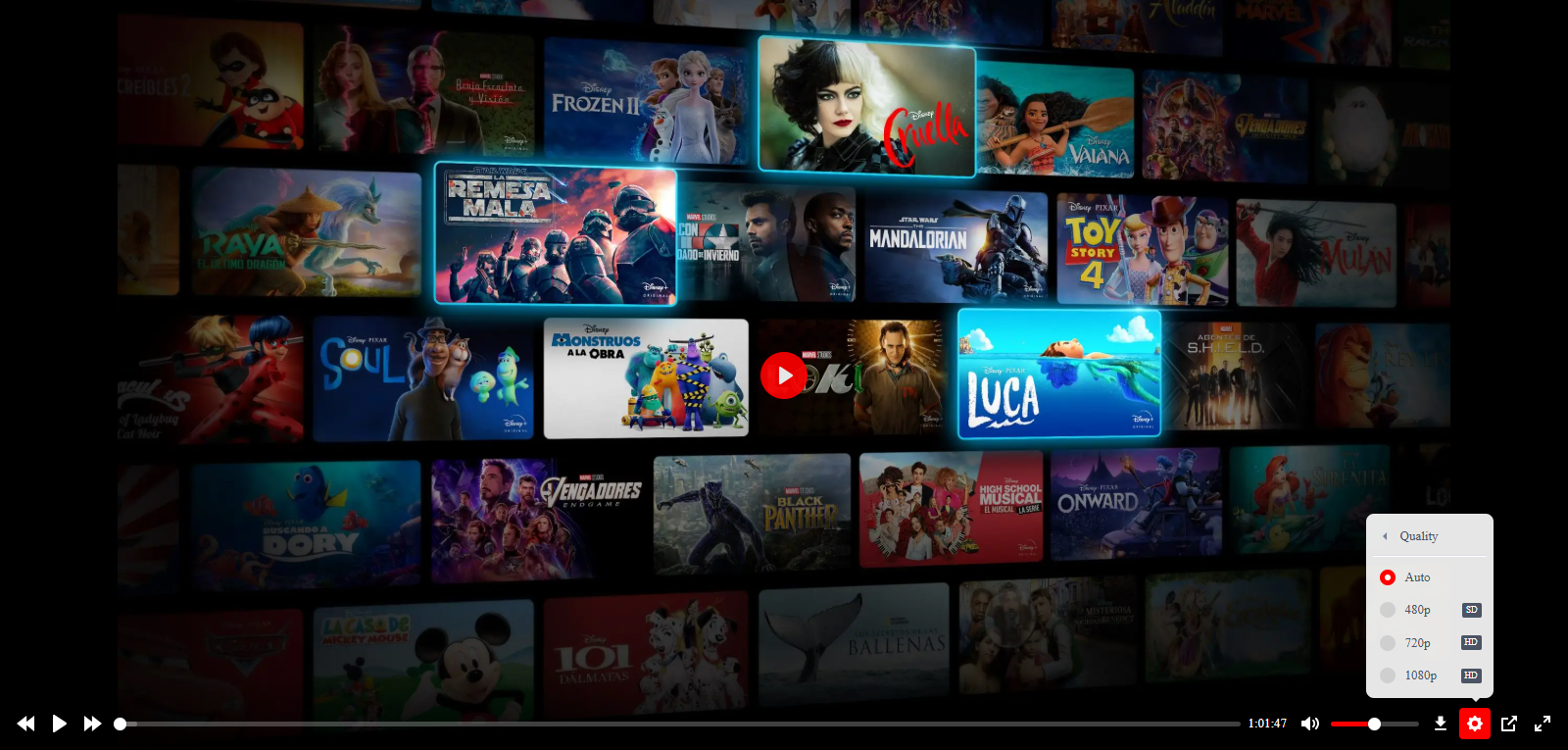 Seleção de qualidade: Menu automático para trocar entre resoluções ou usar modo Auto.